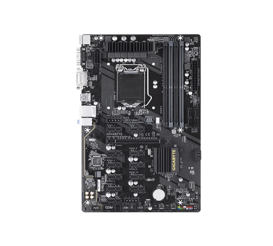 این مادربرد از فرم فاکتور ATX بهره میبرد و نوع سوکت سازنده در آن Intel LGA 1151 است. برای نصب RAM روی این مادربرد 4 اسلات از نوع DDR4 تعبیه شده است. استاندارد حافظهی رم برای مادربرد GA-B250-FinTech برابر با ۲۴۰۰/۲۱۳۳ مگاهرتز است. از قابلیتهای مادربرد گیگابایت مدل GA-B250-FinTech میتوان به وجود 12 اسلات PCI Express اشاره کرد. همچنین شرکت گیگابایت 6 عدد کانکتور SATA3.0 روی این مینبورد تعبیه کرده که میتواند بسیار کاربردی باشد.