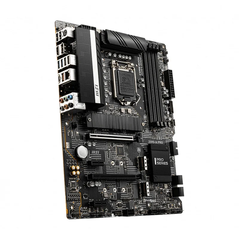 مادربردهای شرکت MSI تا به امروز توانستهاند عملکرد بسیار خوبی را بهنمایش بگذارند. یکی از مادربردهای باکیفیت و بسیار خوش ساخت این شرکت هم، مادربرد Z590-A PRO است که میتوان گفت با توجه به قیمت در نظر گرفته شده، از مشخصات فنی قدرتمند و بسیار قابل قبولی بهره برده است. MSI بیشتر تلاش داشته است تا طراحی سادهای را برای این مادربرد در نظر بگیرد. البته حضور متریال باکیفیت در این طراحی ساده، سوای جلوه ظاهری مناسبی که به این مادربرد بخشیده است، سبب شده تا از افزایش دما در شرایط ترافیک کاری بالا هم جلوگیری کند و در نتیجه عملکرد بسیار خوب و قابل قبولی را شاهد خواهید بود. مادربرد Z590-A PRO مبتنی بر اینتل است که توانایی پشتیبانی از پردازندههای نسل 10 و 11 اینتل را هم دارد. در بخش چیپست هم، چیپست Z590 شرکت اینتل این مادربرد را همراهی میکند. در بخش حافظه هم این مادربرد از چهار اسلات رم از نوع DDR4 بهره برده است که توانایی پشتبانی از حداکثر میزان ظرفیت 128 گیگابایت را دارند. در بخش پنل . پشتی هم شاهد حضور پورتهای متعدد و بسیار متنوعی هستیم